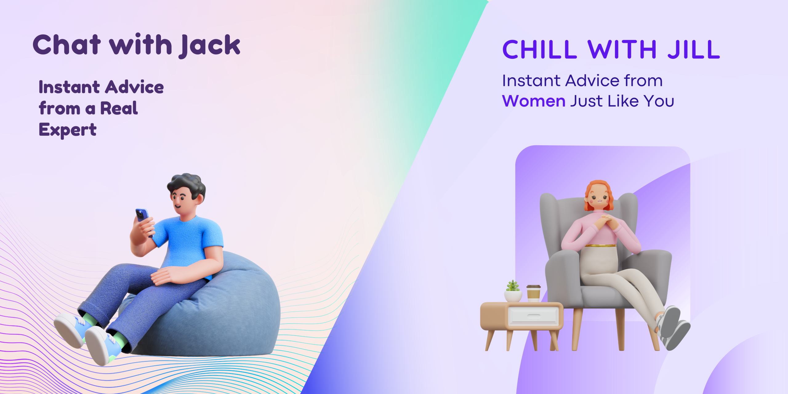 Connect with genuine human experts for advice that feels like chatting with a friend. Dive into Chill with Jill for relaxed tips on fashion, beauty, wellness, and self-care—or opt for Chat with Jack for no-nonsense guidance on repairs, grooming, and life’s curveballs. Choose your vibe, get personalized insights, and level up effortlessly.